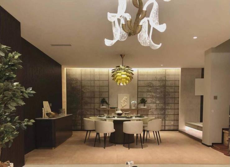 室内设计延续了悠然山水的用意,格局以中式手法展示,规矩大方,颇具东方情怀的正气风度,去繁存简的精品家居器具,保留中式内涵又简约时尚。此外,被动式建筑全屋新风系统实现冬暖夏凉,无需单独安装暖气,为客户节约冬季供暖费用,还免除了维修担忧。让智能科技为精致生活服务,打造出智慧安防、智慧门禁、智慧家居的3大智慧管理系统,编织社区中的隐形安全网,让生活场景百变随心。
