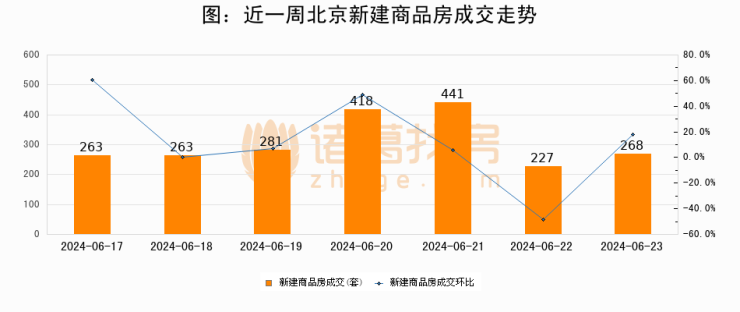 【北京成交日报】06月23日新房成交268套、二手房127套;涨价房源169套