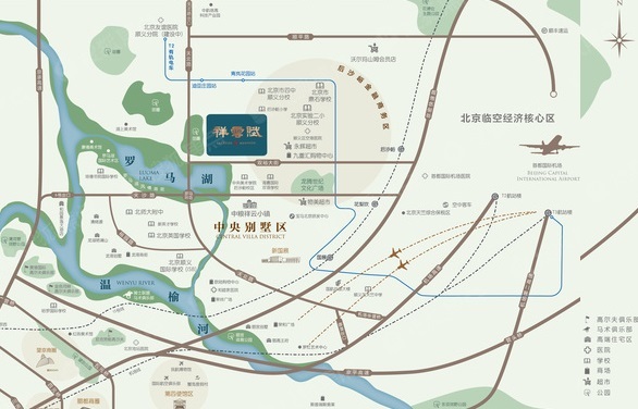 项目位于京承高速6出口(中央别墅区)罗马环岛北800米,紧靠着中央别墅区北侧。售楼处位于顺义区安祥大街与裕丰路交汇处,中粮祥云小镇旁边,两者相距约2公里。周边路路畅通,方便自驾出行,就是离地铁15号线有点距离,交通便利打分仅为3.5分。