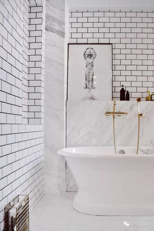 在干湿分离上,浴缸周围三面全部贴瓷砖。