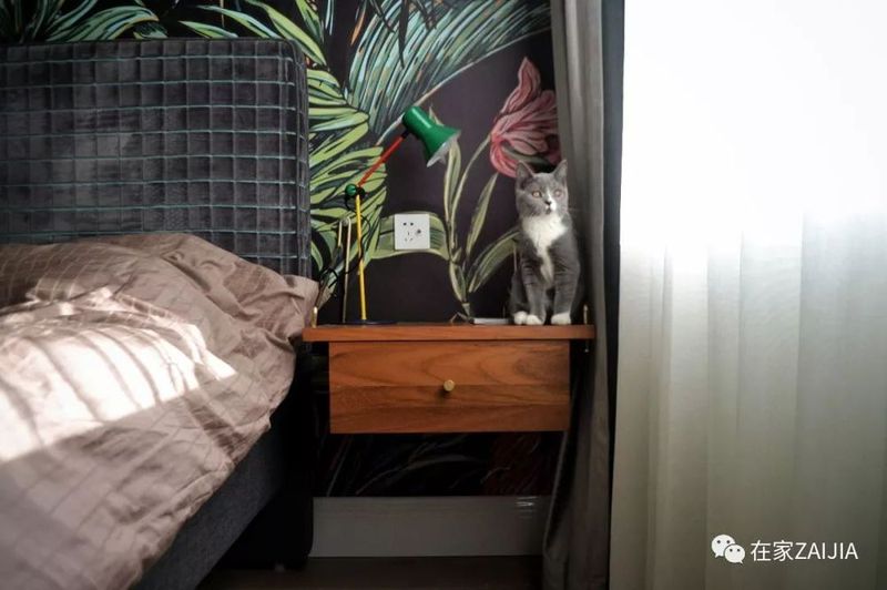 空间色彩搭配:以绿色做基底,用花壁纸让整个空间活泼、灵动起来。