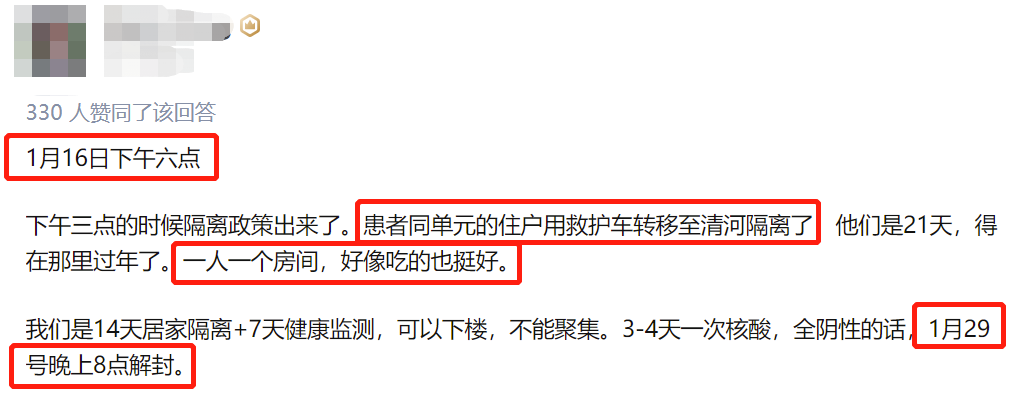 截止到16日下午3点,针对患者小区住户的管理政策也已经公布。虽然遗憾的是患者同单元的住户要在隔离点过年了,但好在“吃的也挺好”。
