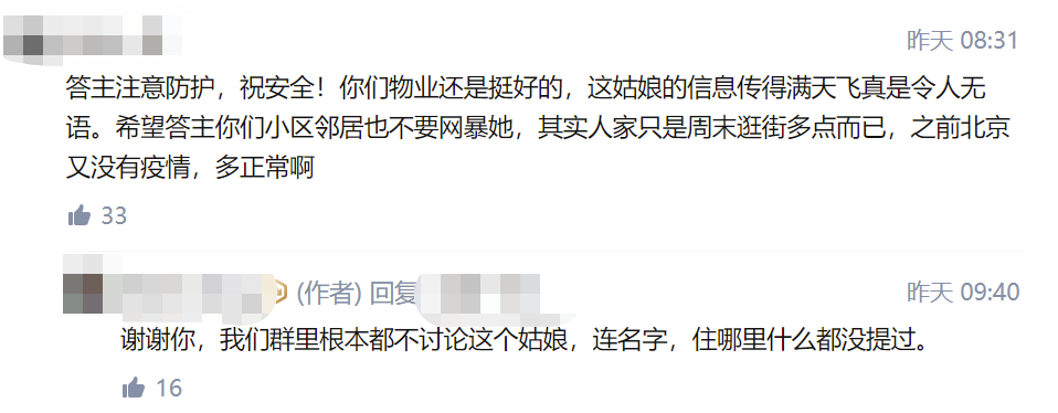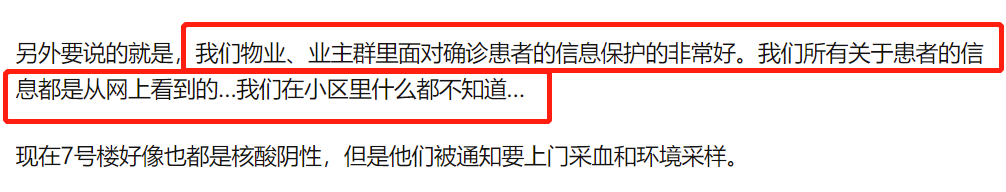网友还尤其提到,物业在业主群里对确诊患者的隐私信息保护非常好,从不讨论或指责患者。