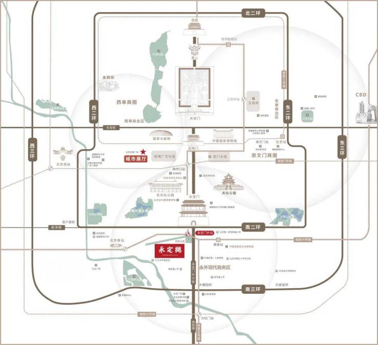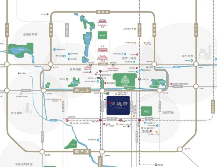 地块位置在二环内,一街之隔是十一中学,南侧直线约350米左右是天坛公园,东北约350米是地铁7号线桥湾站、西北600米左右是7/8号线交汇的珠市口站。