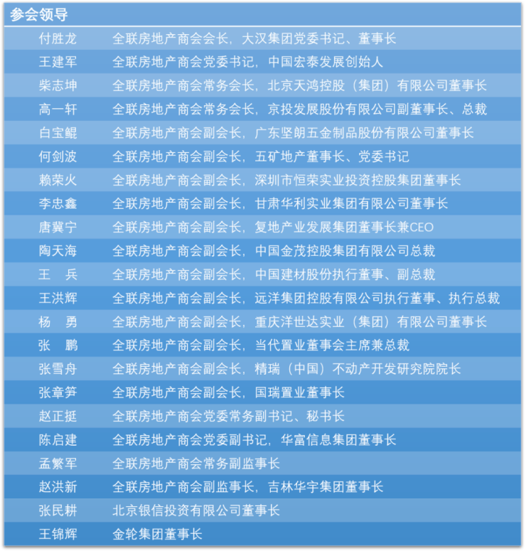全国工商联党组成员、副主席杨佑兴与会指导,全国工商联原副主席庄聪生,全国工商联机关党委副书记、人事部副部长李慧敏,国务院国资委原秘书长彭华岗,全联房地产商会创始人聂梅生,全联房地产商会会长、大汉集团党委书记、董事长付胜龙,商会党委书记、中国宏泰发展创始人王建军等30多位商会领导以及近20家地方商会、商会各专业委员会、商会会员企业等共500余人齐聚北京共襄盛会。年会由全联房地产商会党委常务副书记、秘书长赵正挺主持。