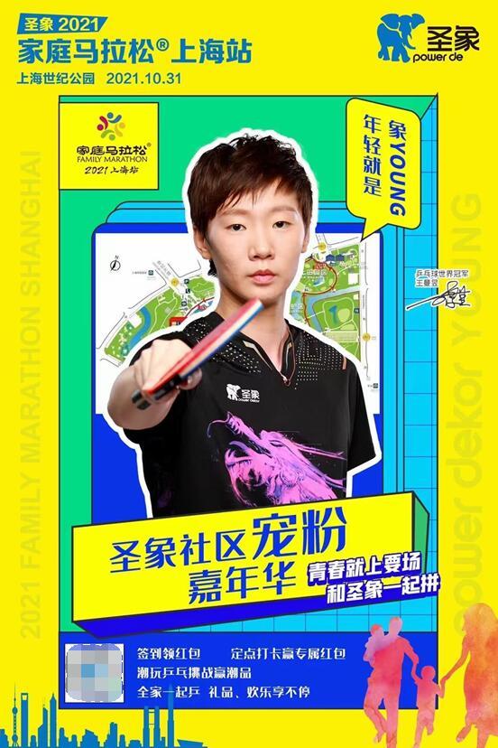 青春就要一起上场,和圣象一起拼!三位冠军选手还将携手圣象,将“圣象潮玩乒乓”运动带到家中,推出三种潮玩乒乓的方法,并亲自进行演示和示范推广,让健康与运动在家里就可以轻松实现。 “圣象潮玩乒乓”作为全民健身运动的一个项目,将首先在10月31日举行的“上海2021圣象家庭马拉松”活动中进行首次现场推广,将由来自上海的300多个家庭率先体验并参与推广,在娱乐健身的同时,还可以得到“圣象社区会员体系”提供的奖励。