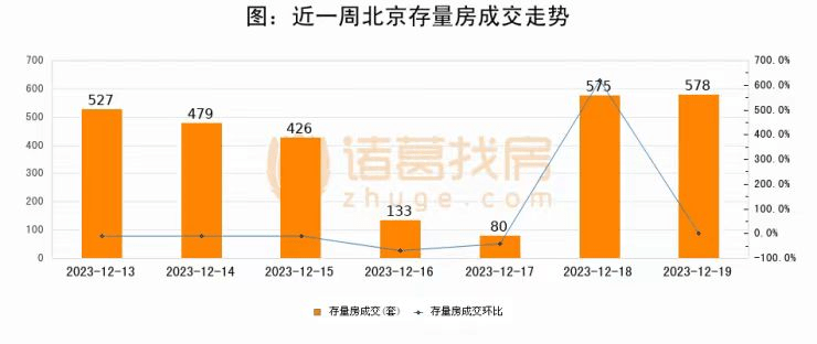 从网签数据看,诸葛找房数据显示,12月16日(周六)、12月17日(周日),北京二手房单日成交分别为133套和80套,低于此前一周日均成交套数(395套)。这两天新房单日成交分别为556套和497套,高于此前一周北京新建商品房日均成交套数(469套)。