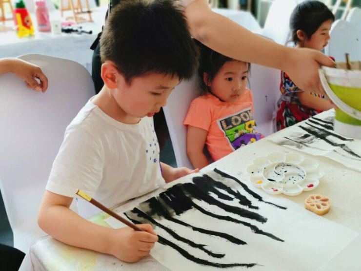 本次由“七彩树”带来的中国古典文化精粹水墨荷花,一笔一纸配上色彩丰富的水墨,加上孩子们奇思妙想的点缀,让传统的水墨之美以更炫丽和萌动的形式呈现,小朋友们将老师讲授的水墨荷花转化成自己眼中的水墨荷花,肆意泼墨,自由创作,乐此不彼。