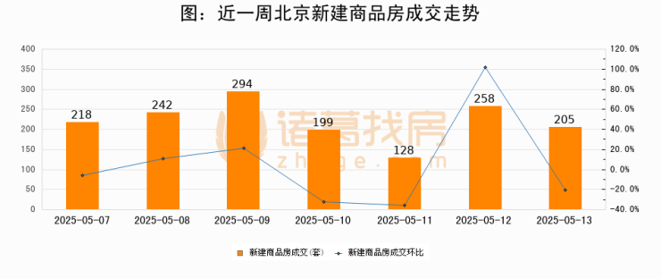 【北京成交日报】05月13日新房成交205套、二手房713套;涨价房源75套
