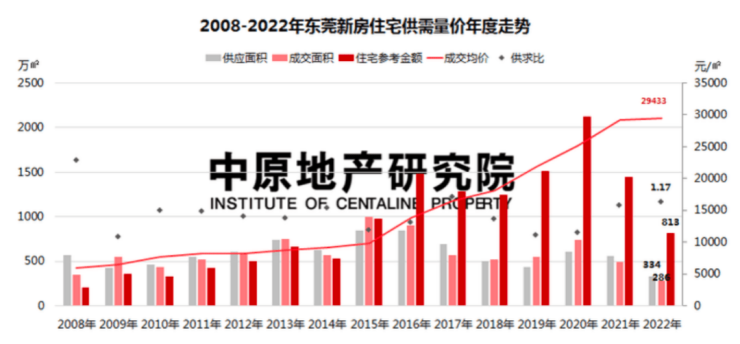 根据东莞中原地产研究院,东莞2015年后房价迎来加速上涨,截至2022年年末,东莞全年网签均价约27733元/平方米,同比微涨1%。