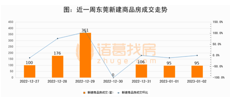而12月东莞全面放开限购后,刺激效果同样明显。据诸葛找房数据,东莞全面放开限购一周,新建商品房成交出现显著回升,过去一周(12.27-1.2)累计成交933套房源,周成交量环比上涨950%。