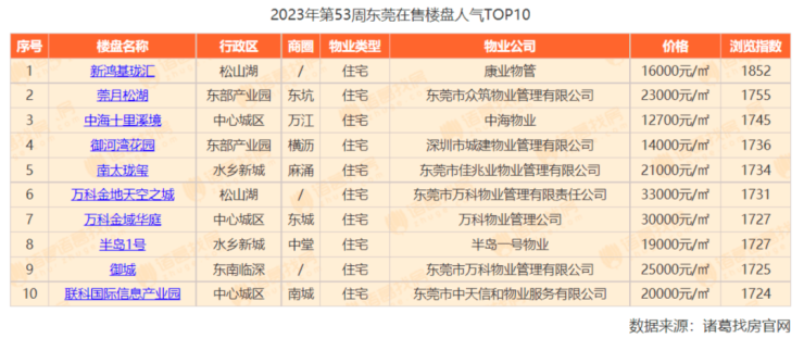 诸葛找房数据显示,东莞在售楼盘个数为433个楼盘,放开限购后,包括位于松山湖片区的新鸿基龙辉、东部产业园的莞月松湖和中心城区的中海十里溪境等楼盘人气度位居前列,销售均价在1.2万-3.3万元/平方米不等。