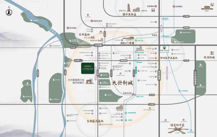 兴城之星,立踞大兴新城西片区北部,西接永定河生态走廊,东观清源公园、念坛公园(近万亩大兴滨河森林公园组成部分),北瞰5508亩城市森林公园,尽享一河三园鲜氧生活。