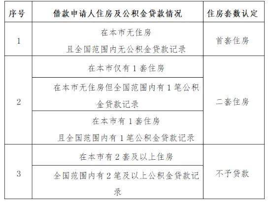 (4)借款申请人夫妻名下已有的住房公积金个人住房贷款(含政策性贴息贷款)记录及本市住房情况,应符合下表要求;同时,对于离婚日期为2017年3月24日(含)以后的借款申请人,在离婚一年内申请住房公积金个人住房贷款的,按二套房贷款政策执行。