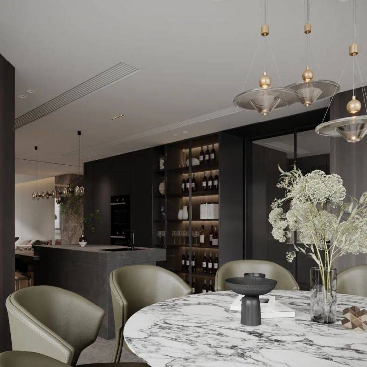 阅历世界山海之后,渴望去追寻自我精神的回归。百搭白、中庸灰、炫酷黑看似平平无奇,却能搭配出“高冷”的气质。不另类又不迎合媚俗的意式现代设计,可以满足从事服装业多年的业主对于品质生活及时尚审美的完美诠释。