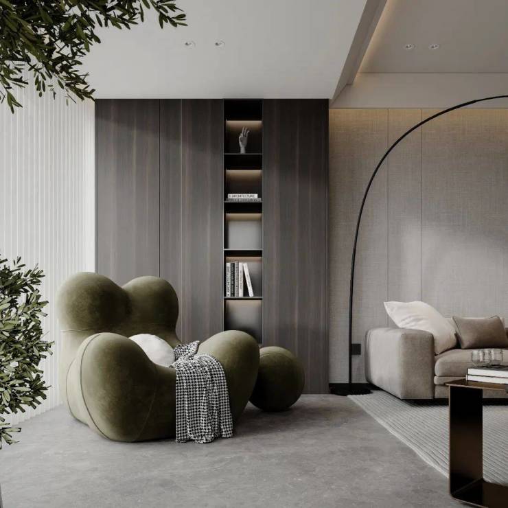 大见刚,细见柔,考虑业主的生活习惯和细节要求,设计师在家具的选择上,避开较大的家具,侧重精致有设计感的“小细腿”家具,以简洁的线条感和轻盈的设计感突出现代风格的独特美感。
