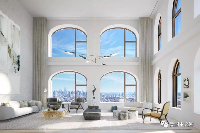 威廉街130号,每套住宅都位于城市街道上方。大卫·阿萨耶认为自然采光是一种设计元素,所以每间住宅内都采用超大拱形窗户构筑的通风内饰。脚下宽大的白色橡木地板更是增加了温度,而阿萨耶定制设计的青铜装置增添了精致感。该建筑较顶层的十层楼是Penthouse和Loggia Residences。室内设计包括宽敞的房间和式天花板,高度从11英尺到15英尺不等,每个房间可以无缝连接室外空间,看到河景以及曼哈顿城市景观。Penthouse和Loggia Residences的浴室配有定制雕刻的意大利大理石浴缸和梳妆台,所有这些还配有阿萨耶设计的青铜装置,宽敞的步入式淋浴间,胡桃木意大利面盆和宽大的收纳柜。