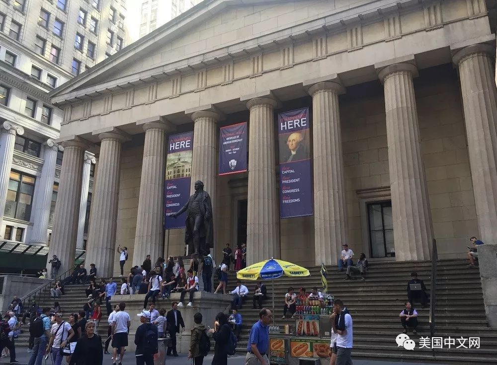 1789年4月30日,华盛顿在纽约宣誓就职,成为美利坚合众国排名前列任总统。华盛顿总统宣誓的地点就在华尔街昔日的联邦大楼二楼阳台。今天的联邦大楼是重新盖的,但华盛顿宣誓就任时站立的石板以及使用的圣经,今天还在同一地点的联邦大楼纪念堂里供人瞻仰。