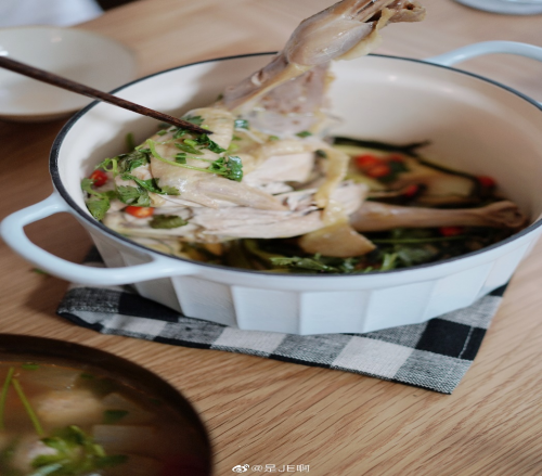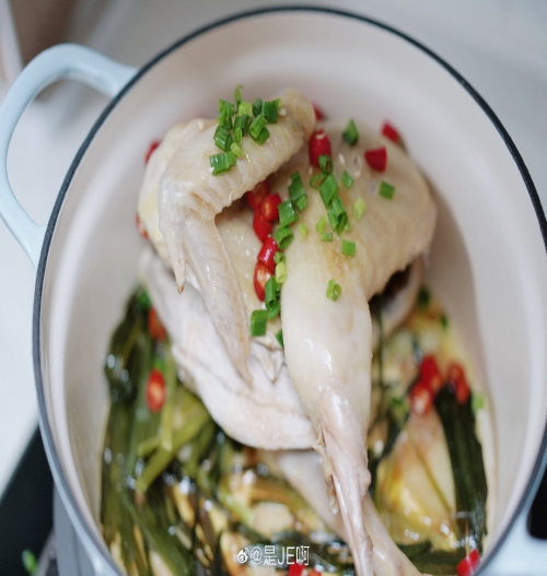 珐琅锅密封性好,焖煮食物受热均匀,鸡肉更入味。同时蓄热性好,焖煮食物速度快,节能省时间,直接上桌保温也很棒~做这样的无水焖鸡用珐琅锅就很合适,锁水性好,肉质鲜嫩多汁。