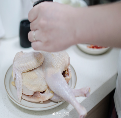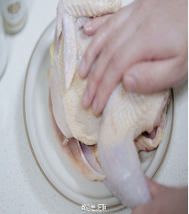 1把鸡洗净后用盐、白胡椒粉腌制,抹匀后静置半小时;