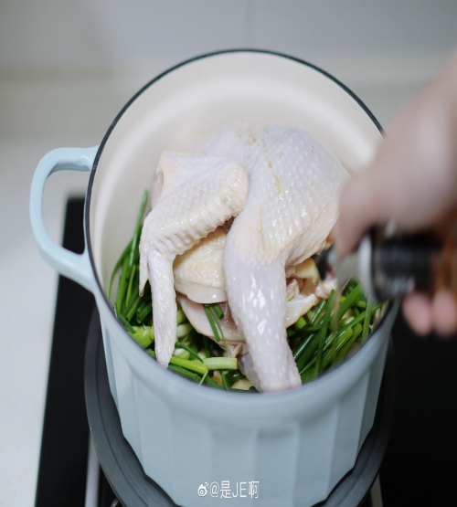 1)珐琅锅无水葱油鸡