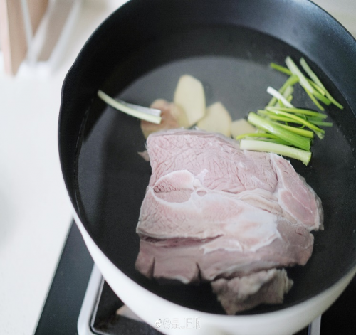 1牛腱子洗净,放入锅里加水煮开,沸腾时捞出血沫;