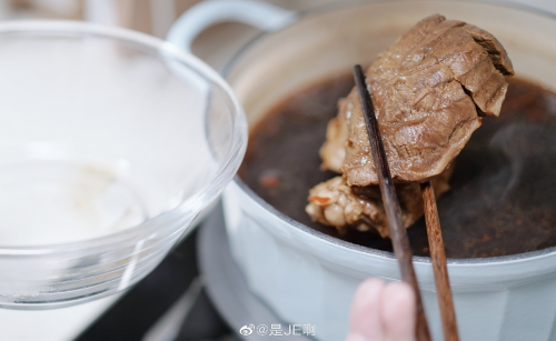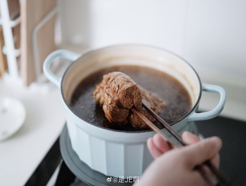 4小火继续炖半小时,关火后浸泡12小时。第二天再煮沸后捞出,晾凉放冰箱冷藏,之后切片享用就好啦。