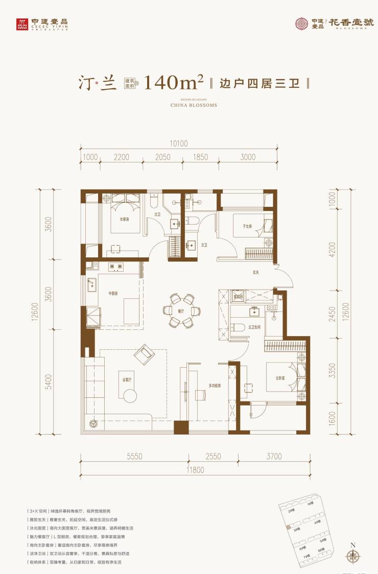 解析:140平改善四居,南向整体面宽11.8米,尺寸更为阔绰,客厅旁边的多功能室可以根据需求变更功能,主卧套房设计,北边两个卧室两个卫生间,且均为干湿分离的卫生间,很好的避免潮湿。这个户型各个空间的尺寸更为宽敞,适合多人口家庭居住购买。