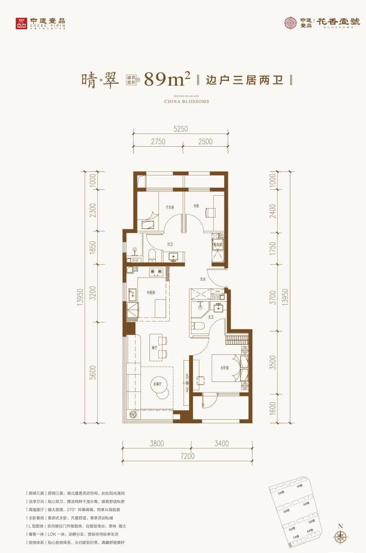 解析:89平边户户型,重点看下客厅,270°转角客厅,采光面很大,客厅面宽达3.8米,这个面积做到这个面宽着实很优秀了;主卧套房设计,保证私密性;双向推拉门开敞厨房,餐厅紧挨着厨房,动线合理;客卫挨着北向卧室,且卫生间干湿分离。这户型设计合理,功能性三居,适合刚需家庭。