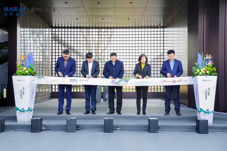 2022年3月23日,在山园新绿的春日里,海开·圆明天颂也迎来了“天颂雅鉴”示范区的优雅绽放。海开控股党委书记、董事长周有建与海开控股副总经理穆良辉,海开控股总经理助理、华大基业总经理王玫玫,海开控股华大基业副总经理牛卫华,海开控股营销管理中心总监李晨共同为天颂·雅鉴示范区开放隆重剪彩。这是国企海开控股继圆明天颂60亿+开盘传奇之后,与当代海淀人物的再次风雅相约,而这次相约,也为时代净值追求的更美好山园生活理想,给出了圆明天颂的答案。