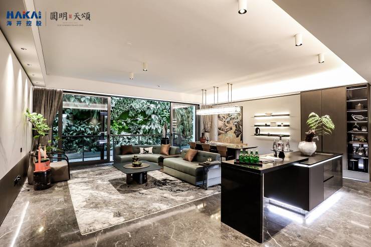 整体的山园生活美学营造之外,天颂雅鉴示范区让所有到访者印象深刻的,便是设计师匠心独运的采用了大量自然元素的植入。从入门的巨型的景观石到京城少见的充满着纹理与自然气息的洞石墙面,从紧邻项目的清河到入门即见的水雾水景,从藏在厅堂转角处珍贵树木到庭院里生机勃勃的绿植珍株,从大量借景、框景手法里的无数示范区局部到曲径通幽的观景长廊,天颂·雅鉴在将源自自然的石头、水系、绿植等巧妙安放在示范区的同时,也将大自然那种生机勃勃的肌理与气息融入进去,让整座示范区天然具有了生长与传承的美好寓意,也让到访嘉宾对圆明天颂的未来生活充满了期待。
