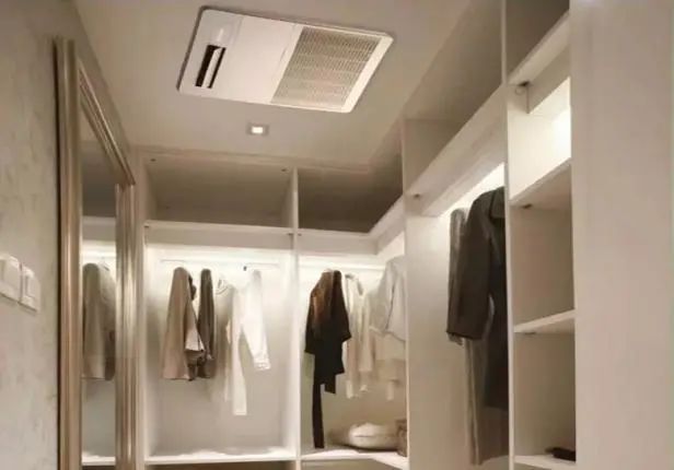 如果将来常住人口增加,又需使用卫生间,还可以拆掉木龙骨改回卫生间。此外,大多数卫生间都设有风道,建议大家保留风道,并在衣帽间增设排风扇,保证空气流通,以免衣服发霉。