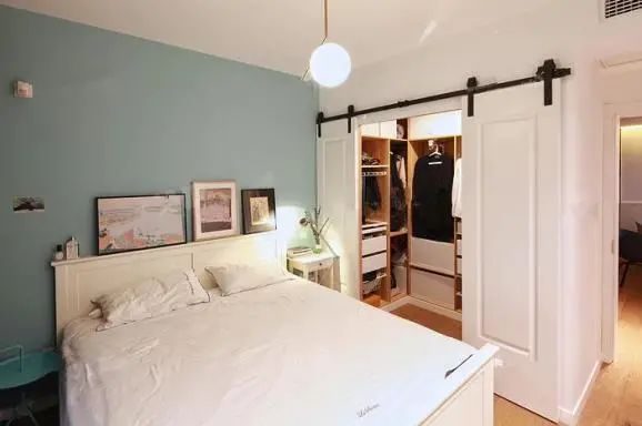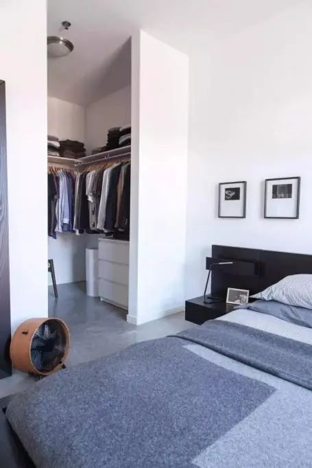 还可以在穿衣镜一侧放置简易衣架,这种布局对房型要求不高,且适合衣物不多的夫妇两人。
