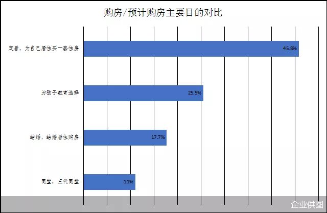 根据贝壳研究院调研数据,45.8%的刚需样本户家庭表示,他们的置业目的是为了定居,能够实现“上车”;25.5%表示是为了孩子能够拥有更优质的教育资源;17.7%表示出于结婚需要而选择购置婚房;11%表示因为家庭结构发生改变选择置业。
