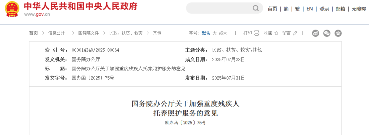 国办:鼓励各地加大对残疾人托养照护服务设施建设和存量土地、场地供给的支持力度