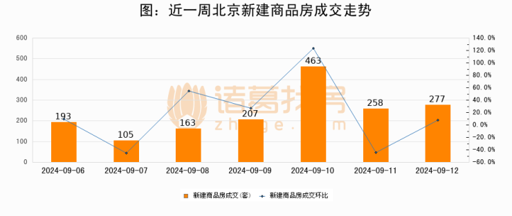 【北京成交日报】09月12日新房成交277套、二手房630套;涨价房源50套