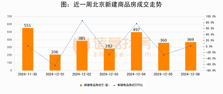 【北京成交日报】12月06日新房成交369套、二手房983套;涨价房源159套