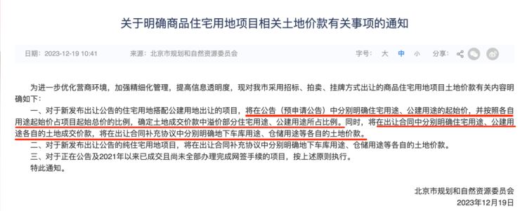 通知明确,对本市出让的商品住宅用地项目土地,将分用途明确土地出让价款。