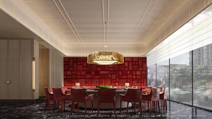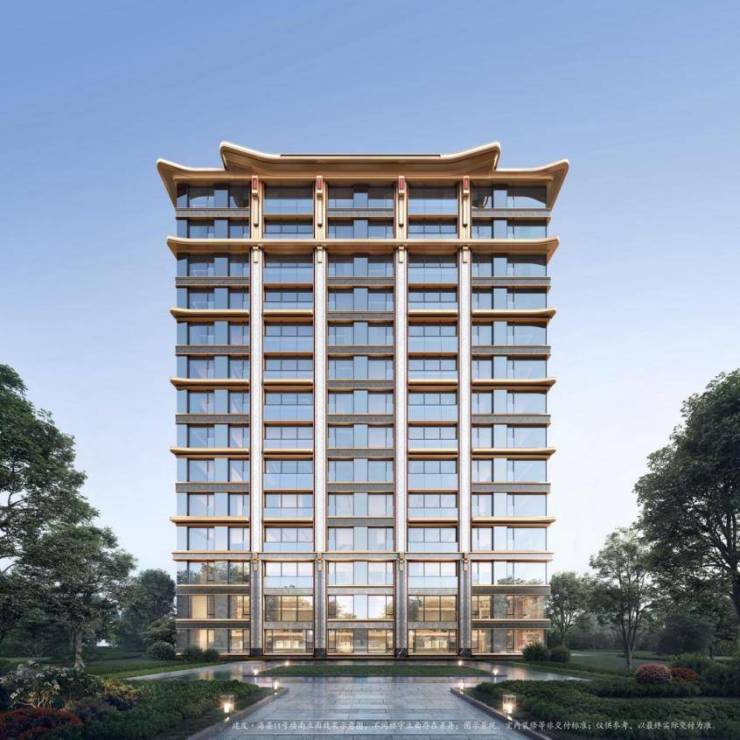 传世大宅以世界文化遗产的颐和园景明楼为蓝本,顶部飞檐冠顶起翘,檐下朱韵斗拱纹,东西南北采用冰蓝、雅灰石材+朱红、赤金铝板幕墙,部分户型270°转角玻璃幕墙,成就了雅阙金阁、宫廷冠冕、鎏光天幕、府门朱韵、朱邸云门王府建筑美学,生成贵气厚重的京派王府风骨。
