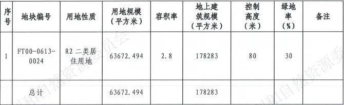 地块总用地面积约6.3万平,地上建筑规模约17.8万平,纯住宅用地,限高80米,容积率2.8。