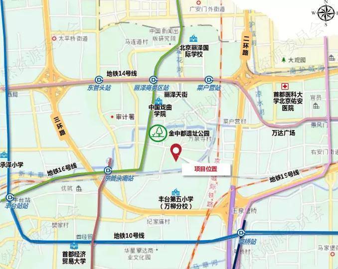 地块具体位置在南二环太平桥街道,距离地铁16号线和房山北延线的交汇的东管头南站约900米,距丽泽直线约1.1公里。