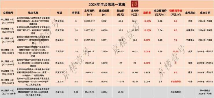 2024丰台全年供应土地面积约24.99万平,建筑规模58.52万平。