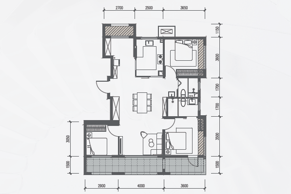 89平米:平面图显示为两居,北侧隔开两个卧室,面积将分别达到9平米和11平米。