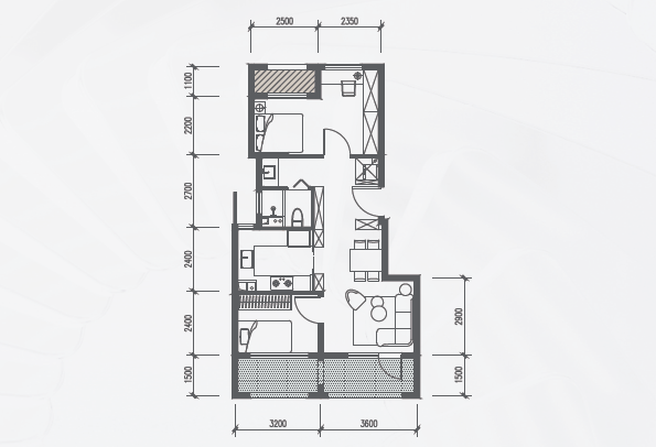 但该户型南向只在主卧设计了内嵌阳台,面积4.95平米,送一半;但客厅有L型飘窗全赠送,面积5.3平米;北向设备平台2.9平米全赠送。总赠送面积10.7平米,实际得房率89%。