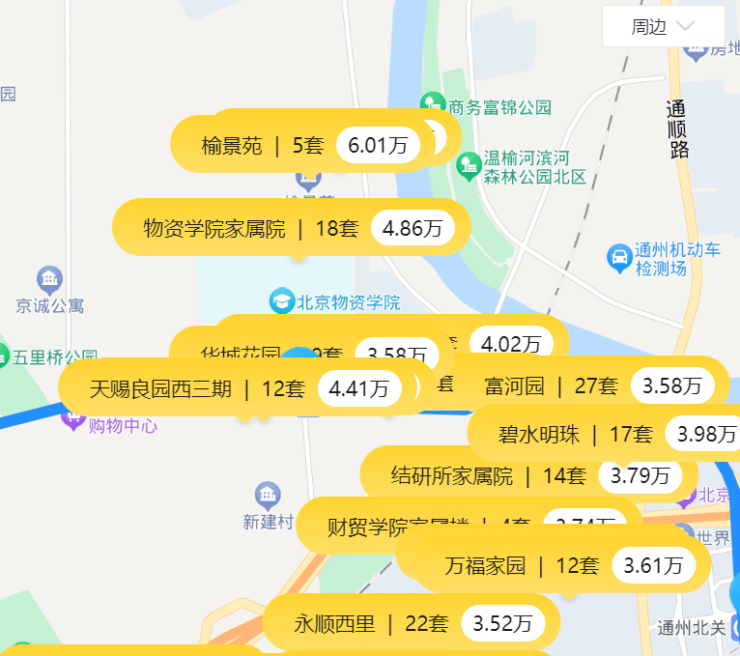 周边二手房市场庞大,且价格压的很低,普遍均价4-5w,最低能到均价3w+,竞争环境很卷。