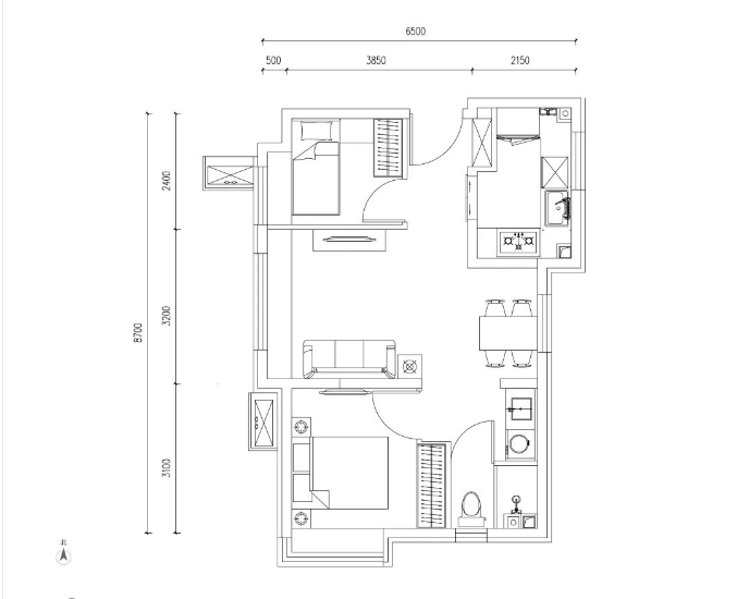 65平两居,门槛户型中规中矩,部分是东西朝向,适合想急于上车的小家庭。