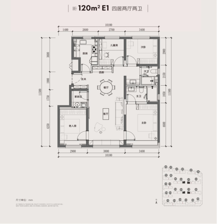 120平四居,户型是最方正的,空间布局也更合理。