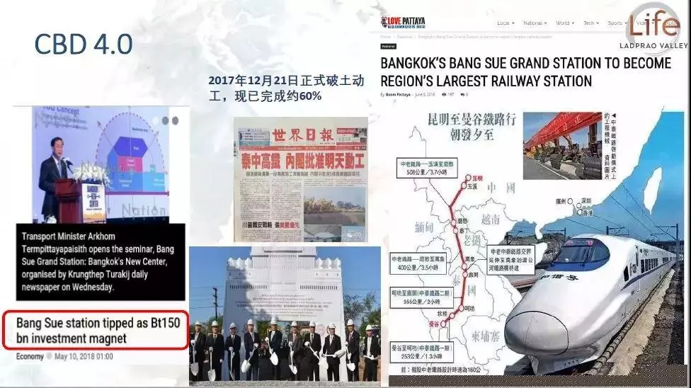 Bang Sue交通枢纽中心未来是泛亚铁路三条交汇点,完工后,所有要经过马来西亚、新加坡、柬埔寨、中国、缅甸的火车都要在该站转运,预计未来每天将吸引客流量超过30万人次,人潮的汇聚势必也带来住租房需求。