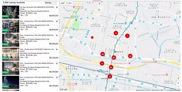 ratchadapisek与makkasan区域二手一居室售价从500万-800万泰铢不等,均价约为3.5万-5万人民币。