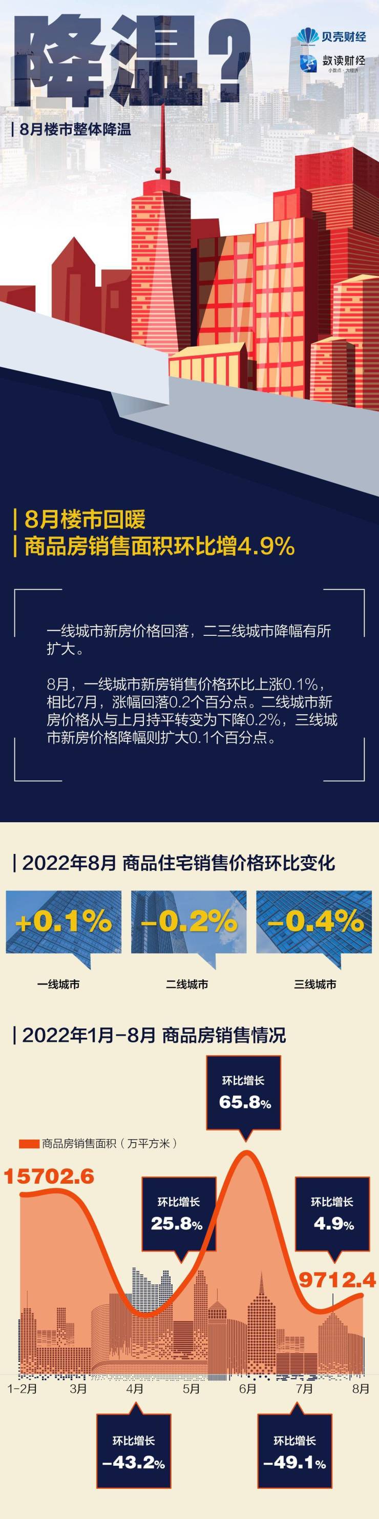 8月楼市整体降温,70个大中城市中,50个城市新房销售价格环比下降,相比7月,增加10个城市。